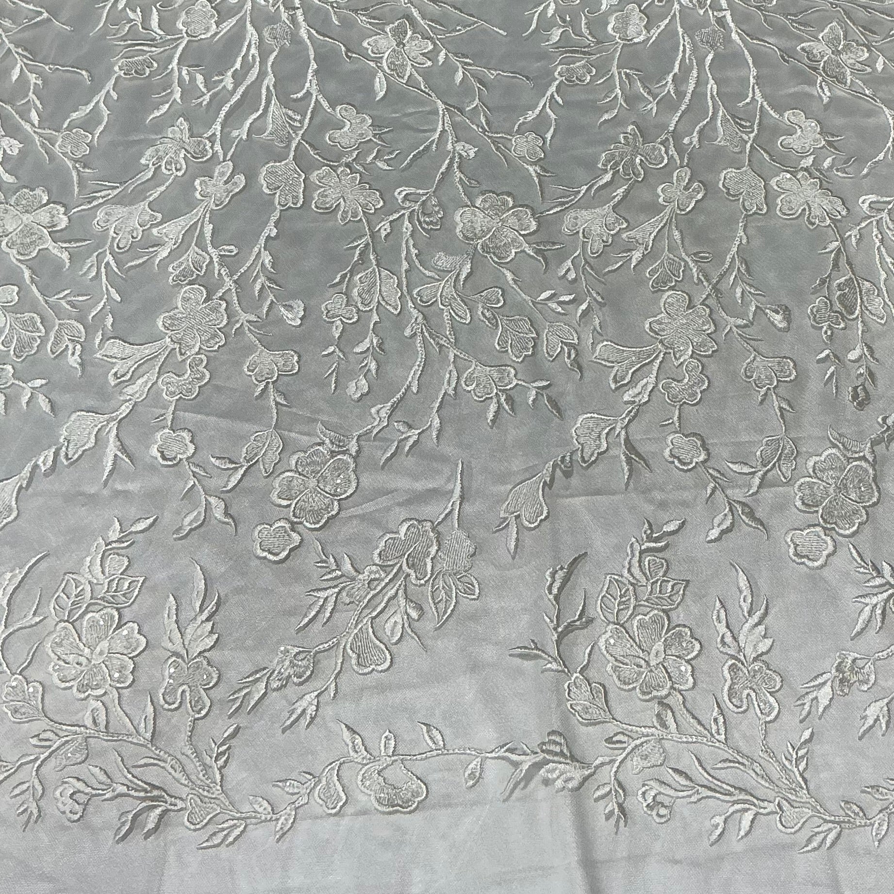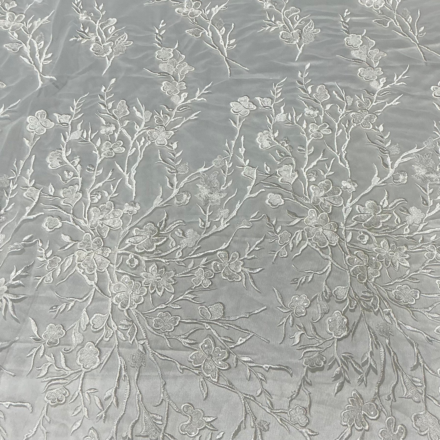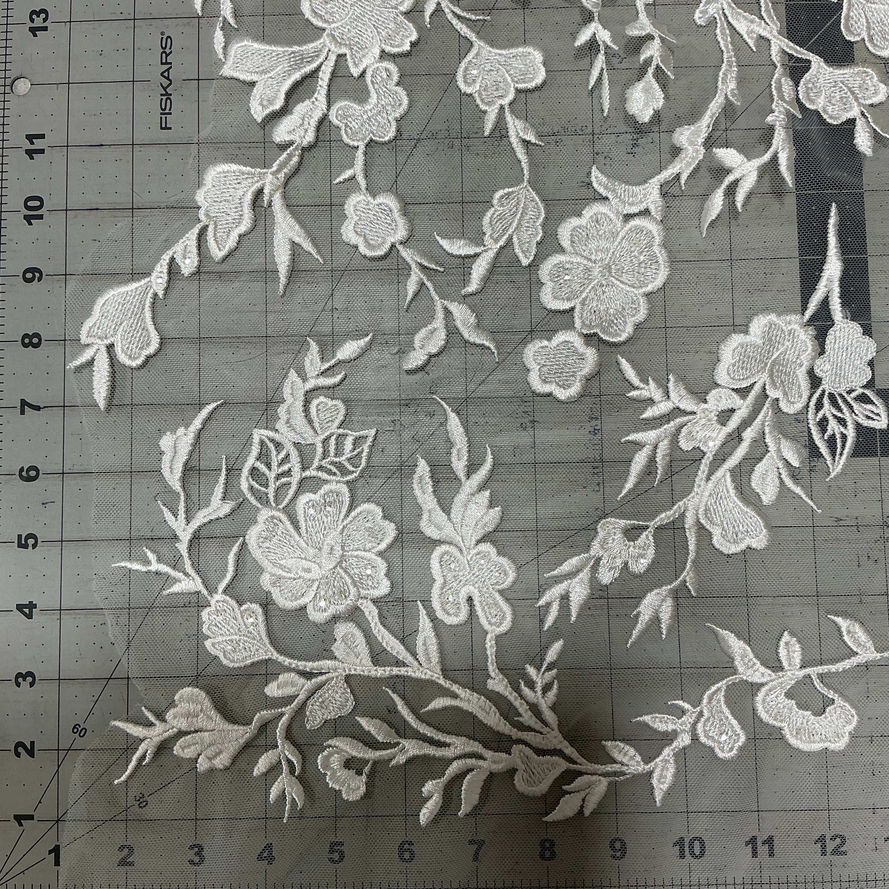 This delightful floral spritz sprays flowers exuding from the center outward. This pattern can be placed near the waist to splash down the skirt and spritz up the bodice/sleeves. The floral has a subtle sequined sparkle.