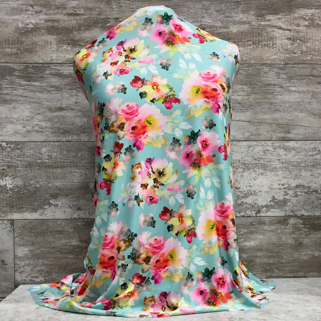 DBP / Stable Knit - Aqua Floral - Sold by half yard