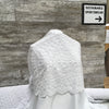 Blessed color 01 is a bright white crocheted type embroidery on a mesh. The pattern is close, giving it a filled out, feel for the bodice without needing the applique. The edge has a scallop usable anywhere. The hand of this lace is structured with some flexibility.