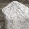 Drape/Hand: corded embroidery on mesh, soft hand with stable drape