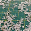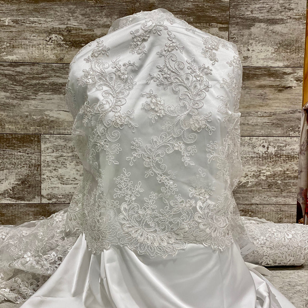 Drape/Hand: corded embroidery on mesh, soft hand with stable drape