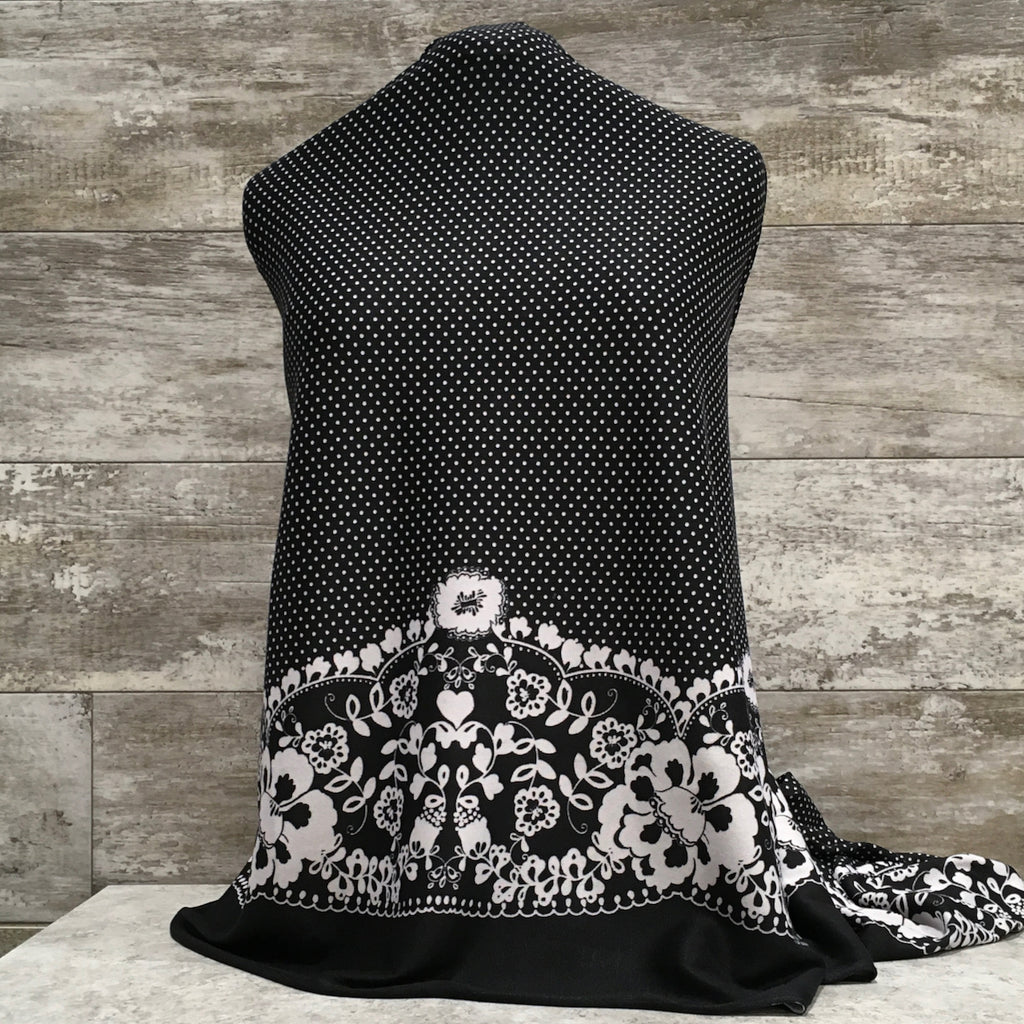 Dotted Floral Border/ Black and Ivory | Sold by the half yard