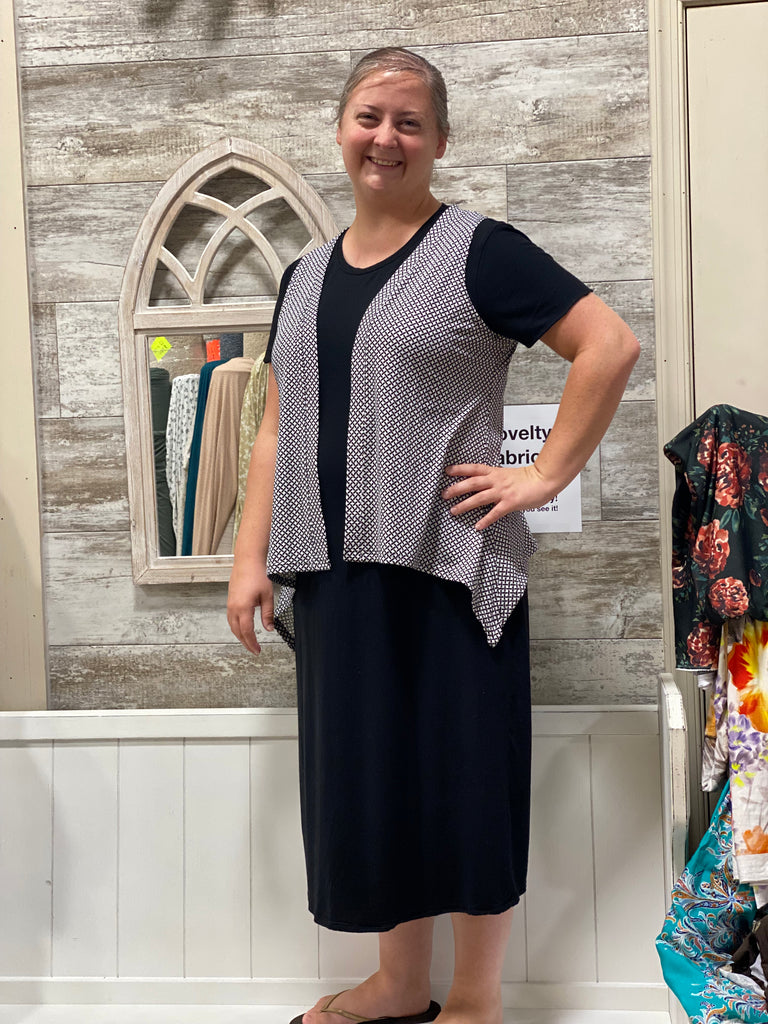 A loose and open classic cardigan pattern with a handkerchief hem. Only one size available - 12/14 ladies.