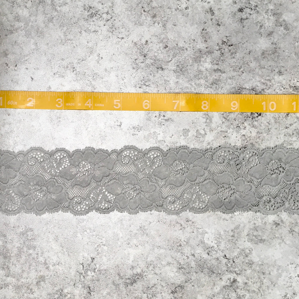 Trim Lace / Pretty Pansies Grey - Sold by the half yard
