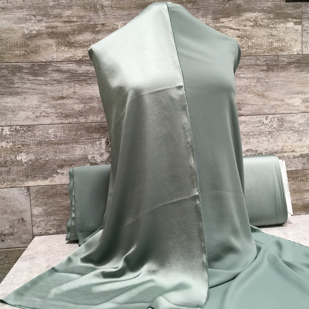 - The drape is more structured than the Tahari and the satin face is more shimmery that the 52" wide Miyuki.